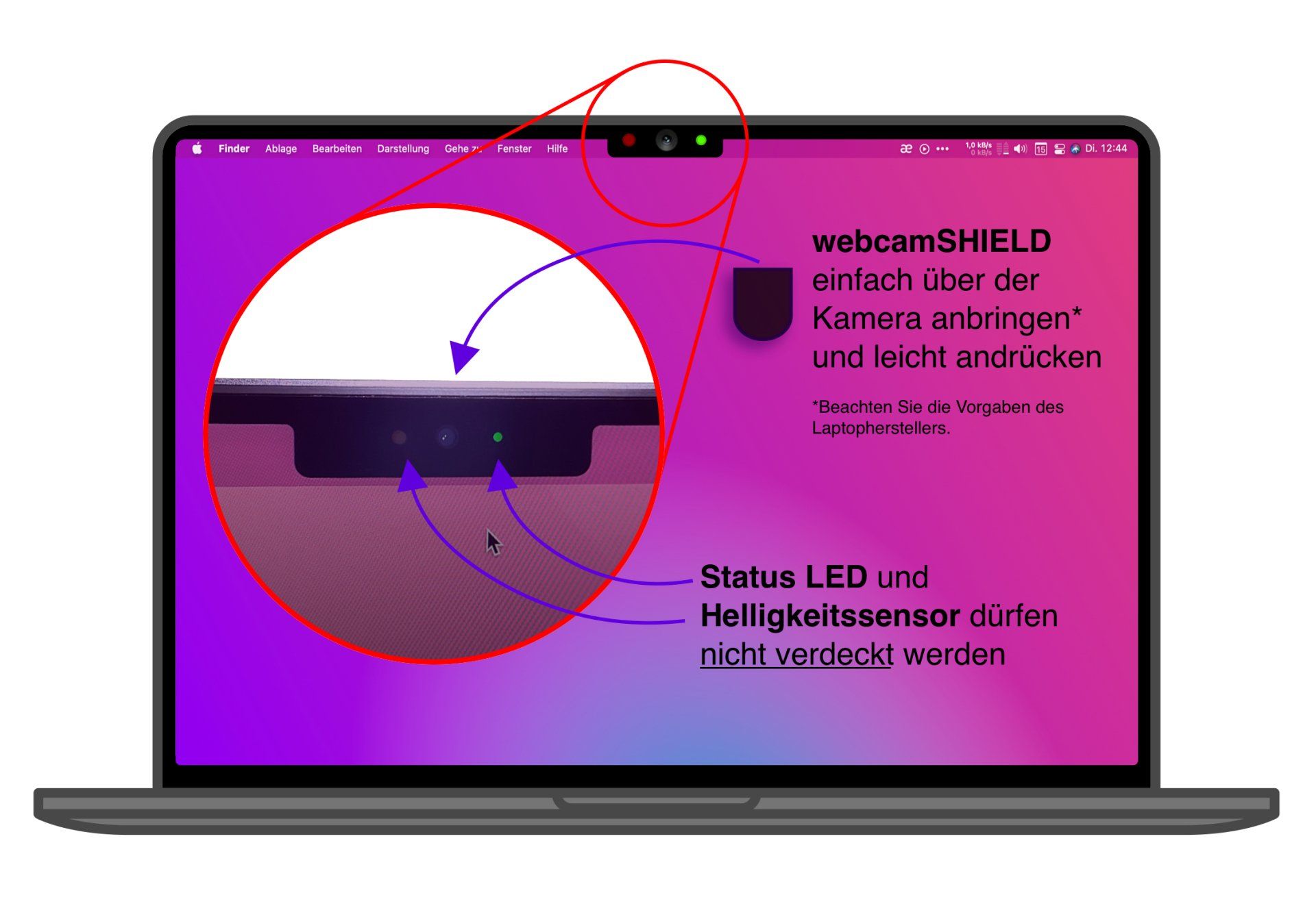 * Bitte beachten Sie die jeweiligen Besonderheiten Ihres Laptops und die Vorgaben des Laptopherstellers vor der Verwendung von webcamSHIELD. Für Schäden durch unsachgemäßen Gebrauch wird keine Haftung übernommen.